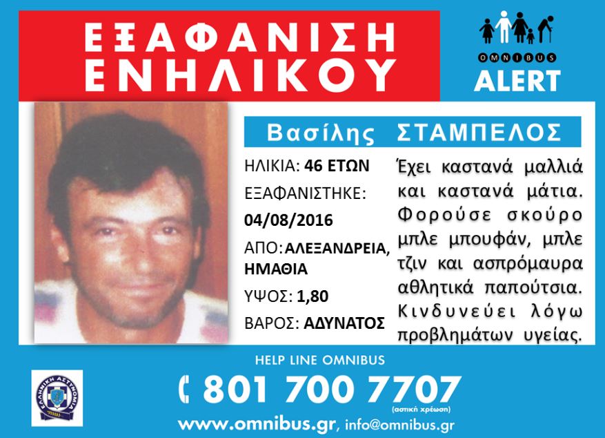 Για την εξαφάνισή του έχει σημάνει Omnibus Alert.