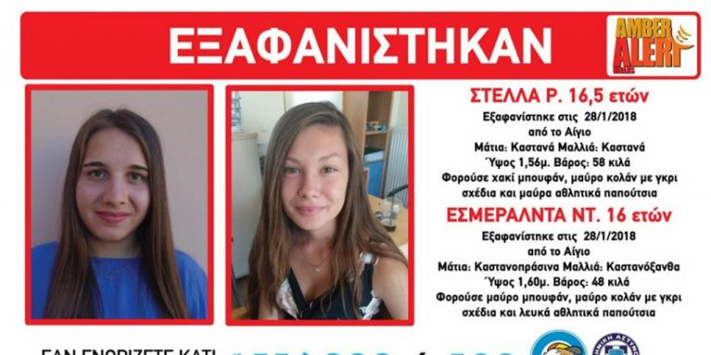 Στις 28 Ιανουαρίου, στις 21:00 το βράδυ, εξαφανίστηκαν από την περιοχή του Αιγίου, η Εσμεράλντα Ντ. 16,5 ετών και η Στέλλα Ρ. 16 ετών.