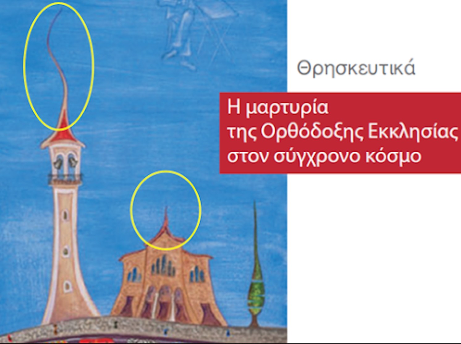 Με μια περίεργη κατακόρυφη γραμμή αντικαταστάθηκε στο εξώφυλλο του βιβλίου ο σταυρός τον οποίο φέρουν όλοι οι ναοί και τα καμπαναριά των ορθόδοξων εκκλησιών.