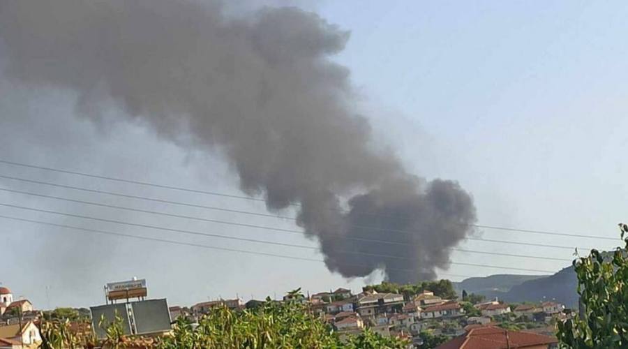 Η φωτιά εκδηλώθηκε λίγο πριν τις 08:00 σε εργοτάξιο όπου παράγεται πίσσα, με πυκνούς καπνούς να είναι ορατοί από μεγάλη απόσταση.